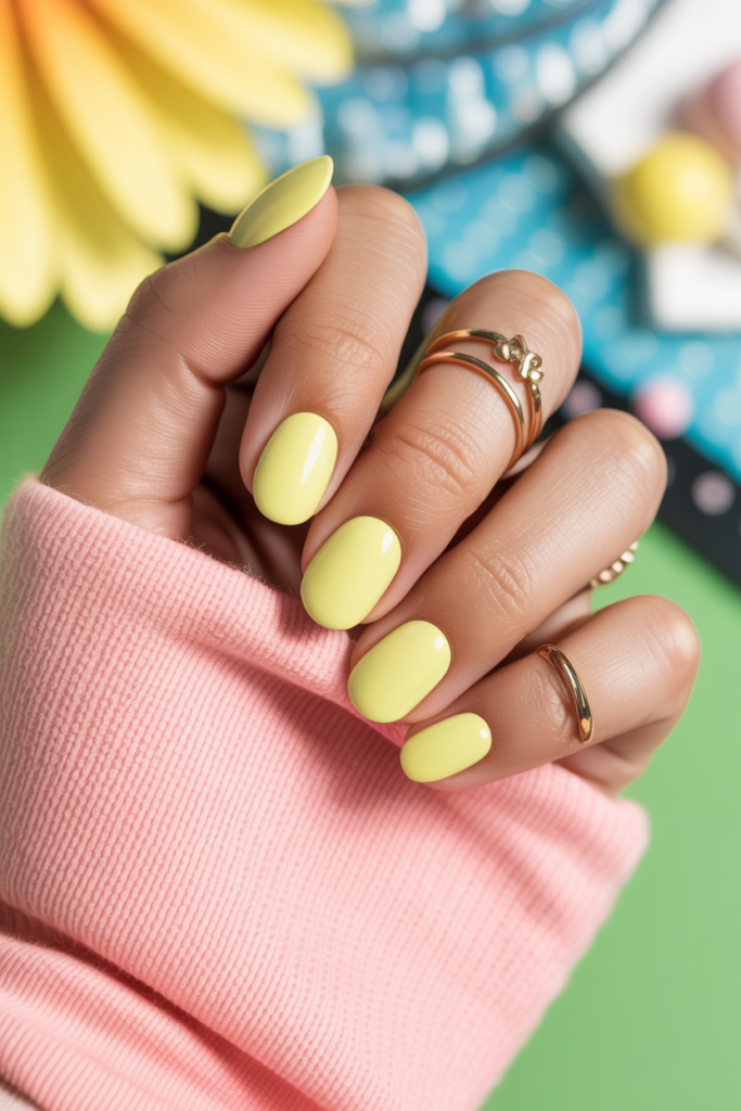 Short rounded nails in pale yellow offer a clean, simple look. The soft shade works well for everyday wear and fits any style.