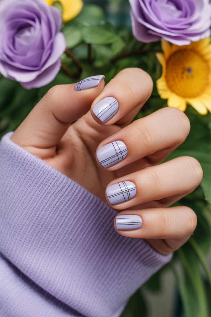 9) Soft lavender nails with minimal black lines