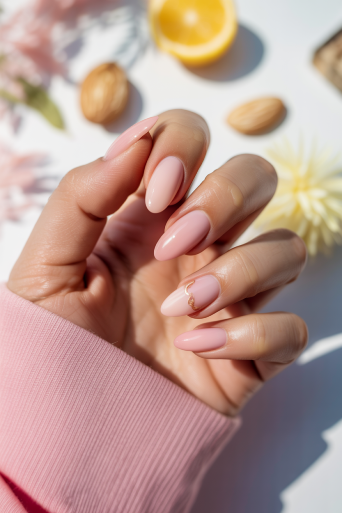 1) Soft pastel pink almond nails