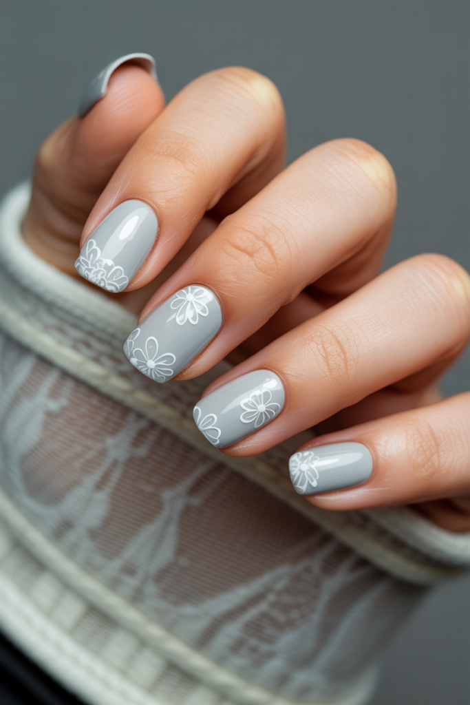 This design uses a soft light grey base to keep the look subtle. White floral lace patterns add a delicate, detailed touch. The contrast is gentle but stylish, perfect for March’s fresh and calm vibe. It works well for both casual and formal occasions.
