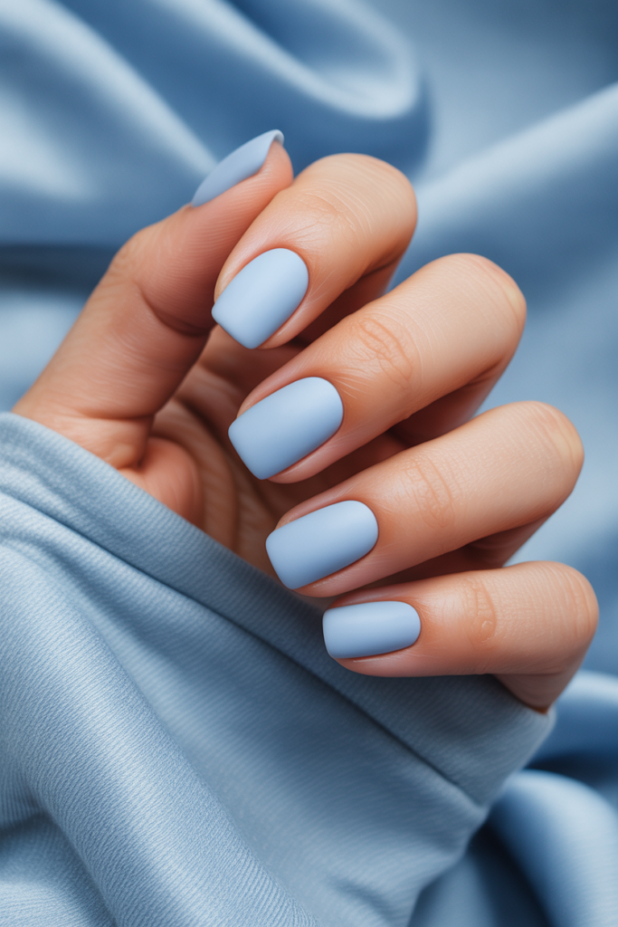 The milky blue matte finish offers a soft, muted look that feels modern and fresh. It combines a gentle blue tone with a smooth, non-shiny surface. This style suits both casual and formal occasions, adding subtle sophistication without being too bold.