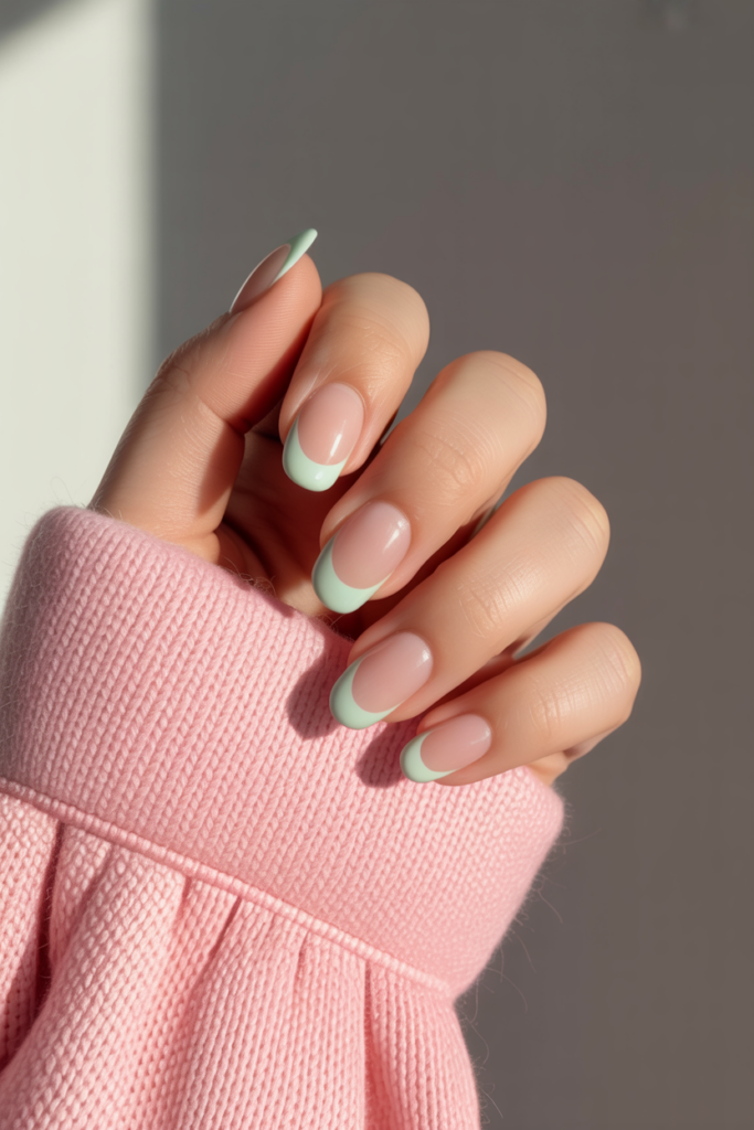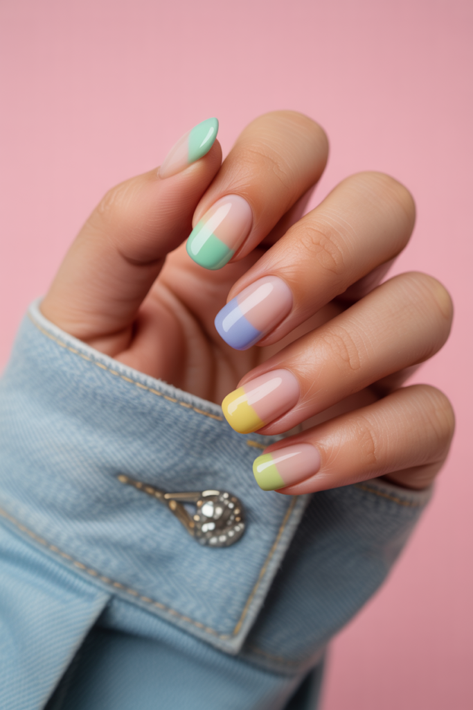 Pastel French tips offer a fresh twist on a classic look. Soft colors like baby blue, lavender, and pale pink replace the traditional white.