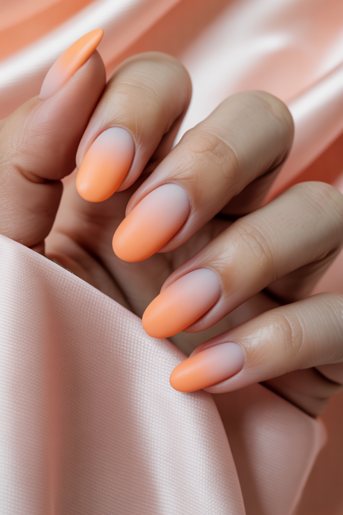 This style blends soft peach shades from dark to light in a smooth transition. The matte finish adds a subtle, modern look that is less shiny but still elegant. It suits both casual and formal occasions with a simple yet stylish effect.