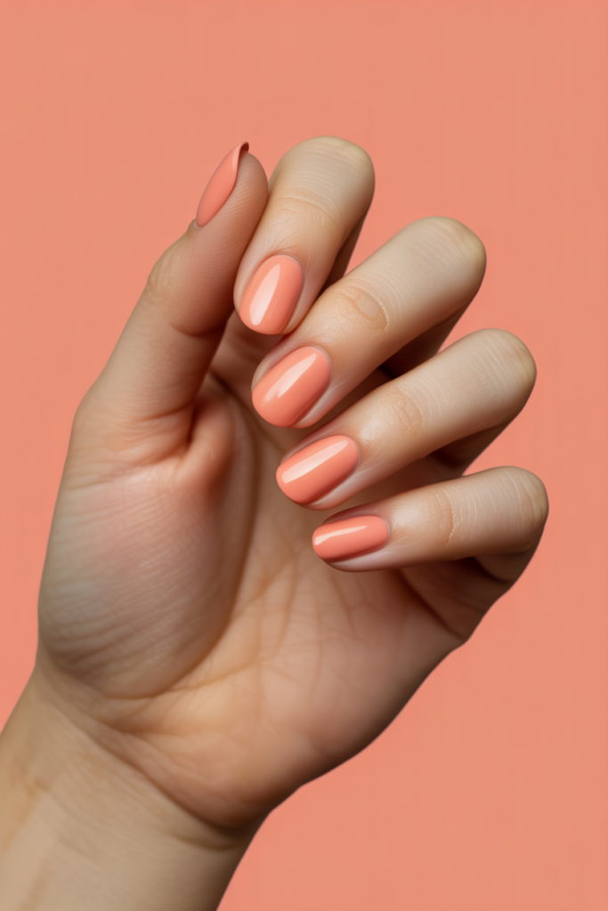 Peachy coral minimalist nails focus on clean, simple designs. They use soft shades with little to no decoration. This style works well for everyday wear and suits all skin tones. It offers a fresh, modern look without being too flashy.