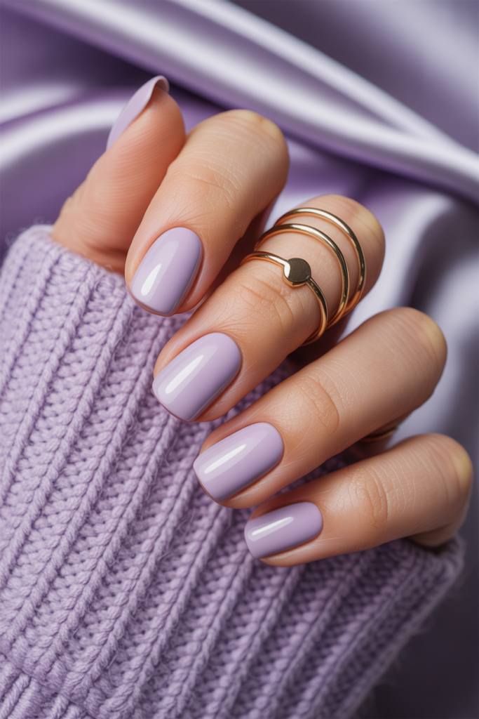 Soft lilac as a solid color is a simple and elegant choice. It works well on short or long nails, giving a fresh and clean look. This pastel shade suits many skin tones and fits any season or style.