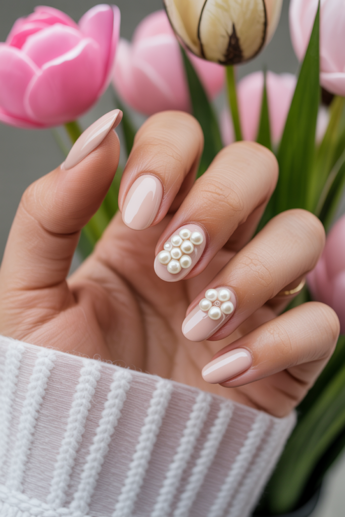 3D pearl accents on a nude base add subtle texture and elegance to nails. This style balances simplicity with a touch of luxury. It suits both everyday wear and special occasions. Small pearl details bring soft sophistication without overwhelming the look.