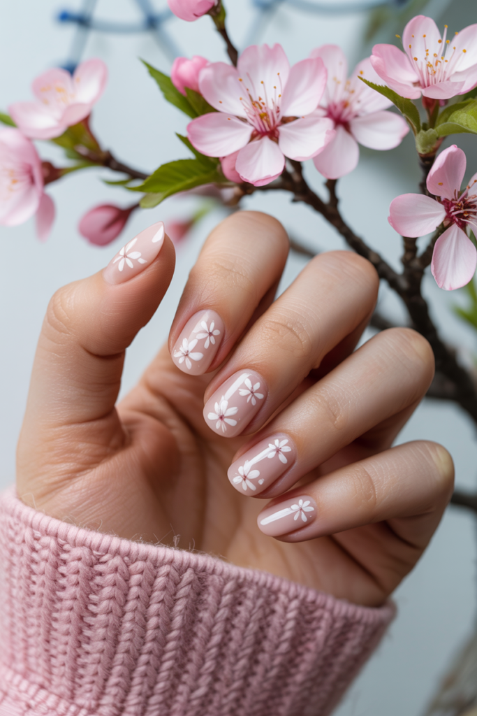 Delicate cherry blossom nail art uses soft pinks and subtle petal designs. It creates a gentle, elegant look that fits well with spring. This style often includes fine details to highlight the beauty of the blooms without being too bold.