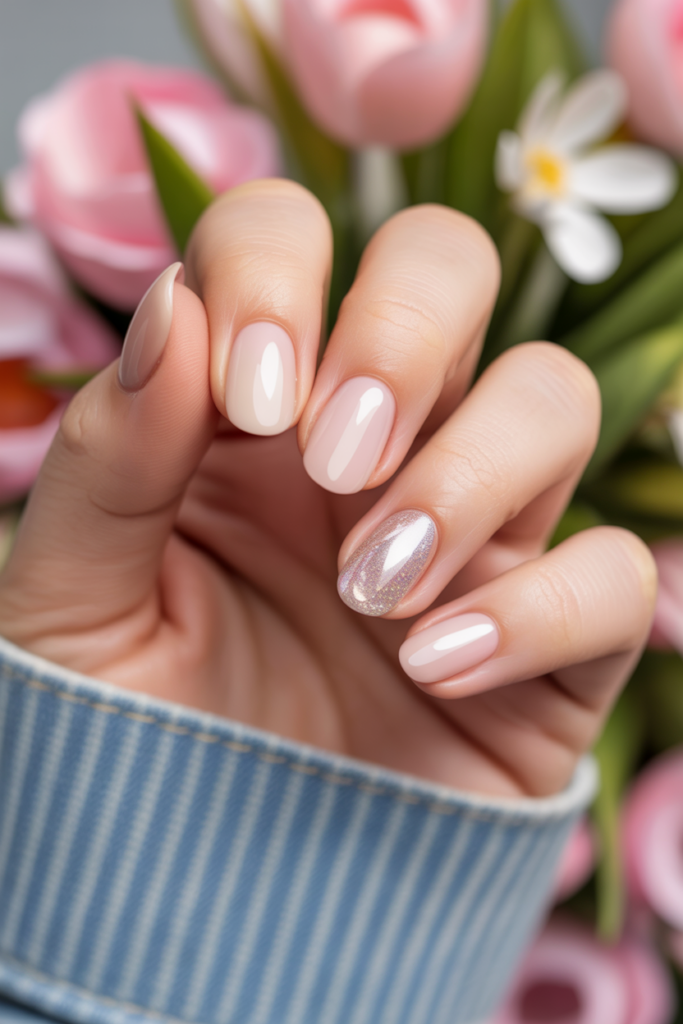 This style works well on any nail shape or length. It offers a fresh, subtle look suitable for spring and summer.