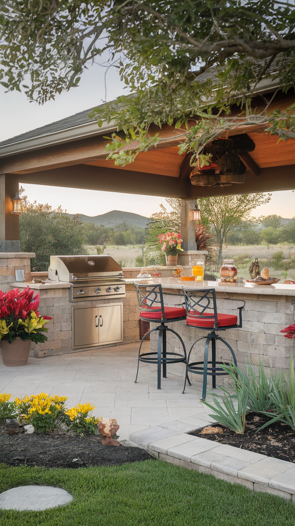 This outdoor kitchen is not just functional; it creates a space for gathering and enjoying the outdoors. Whether you’re hosting a dinner party or enjoying a quiet evening, this setup enhances your outdoor experience.