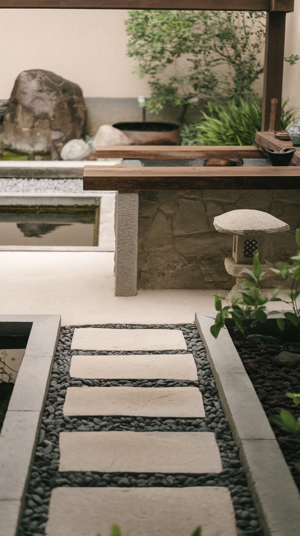 Imagine stepping into a serene outdoor cooking area that feels like a mini retreat. This Zen garden setup combines nature and culinary creativity perfectly. The stone pathway leads you through a tranquil space, inviting you to explore.
