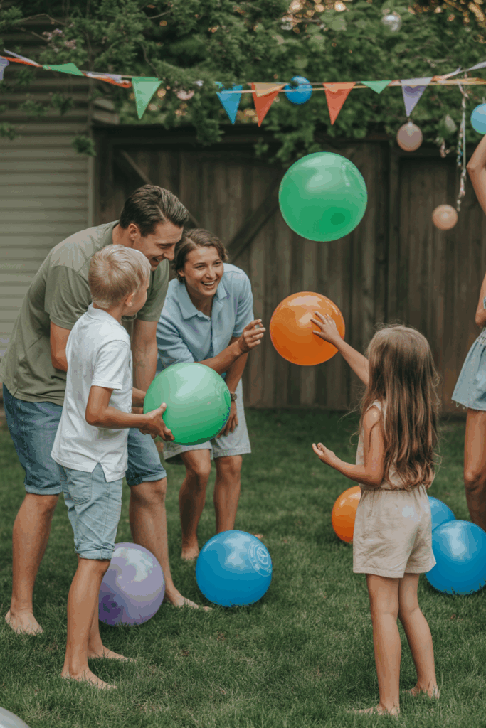 Balloon Pop Relay is a fun and energetic game perfect for outdoor parties. In this game, participants race to pop balloons while having a blast. The image shows a group of friends enjoying a lively setting, with colorful balloons in hand, ready to take on the challenge.
