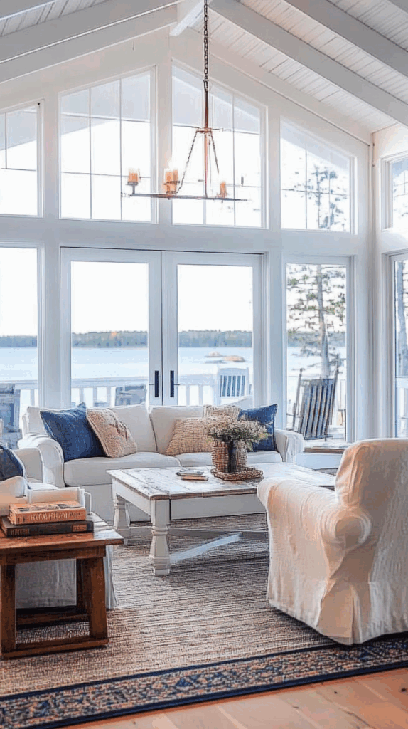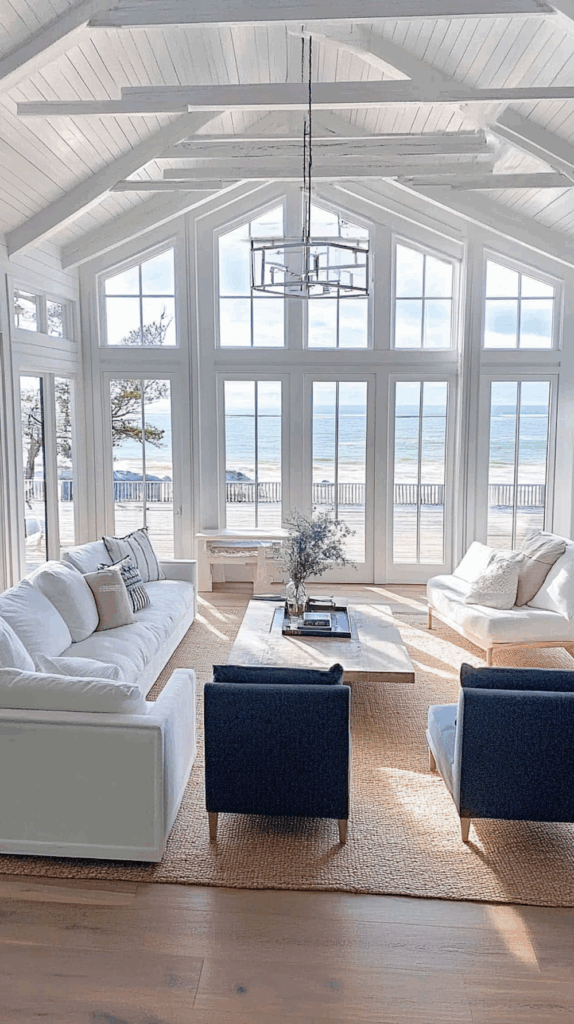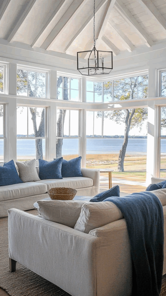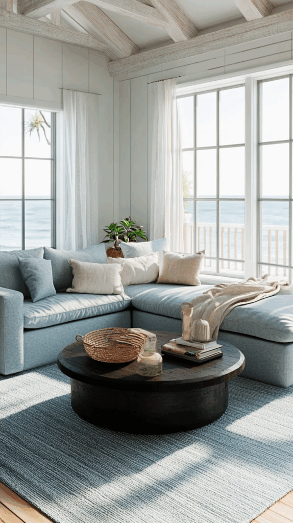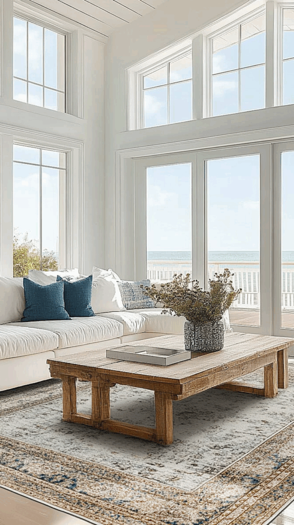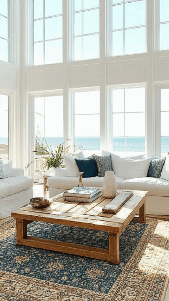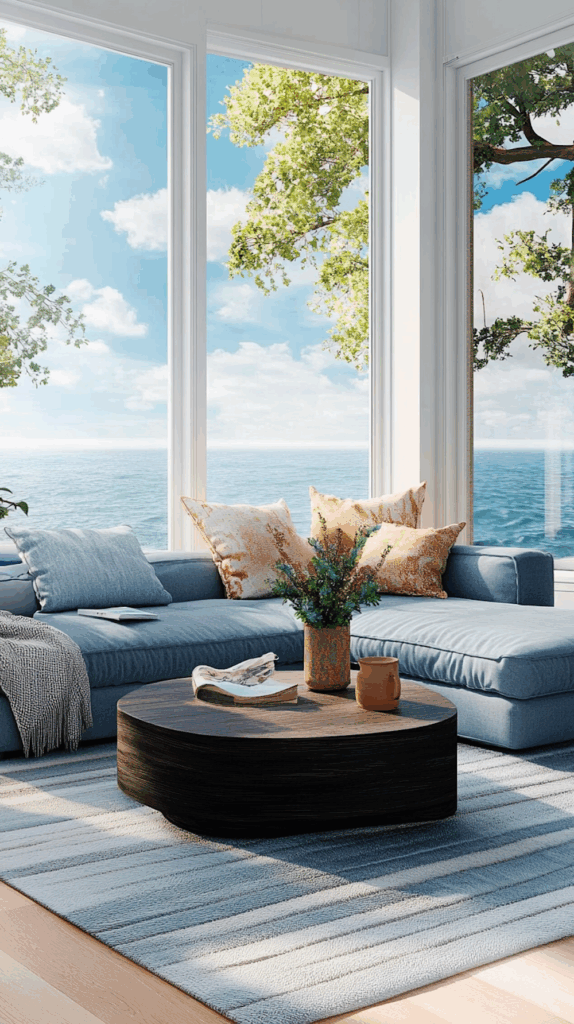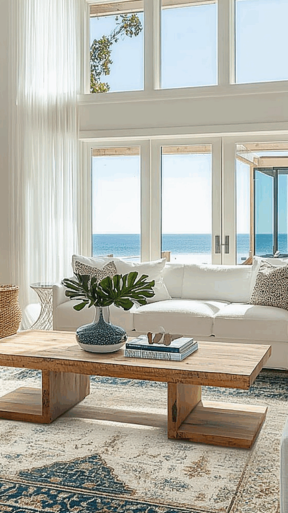 Using a few well-chosen pieces allows the natural light and coastal colors to stand out. This approach supports a calm, breezy vibe.