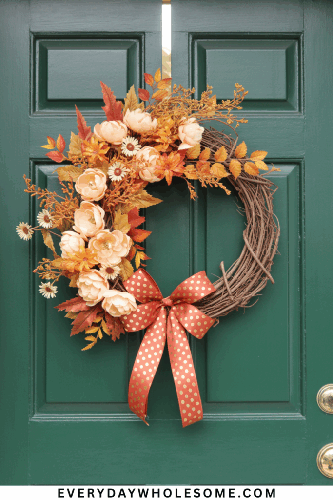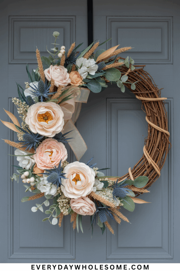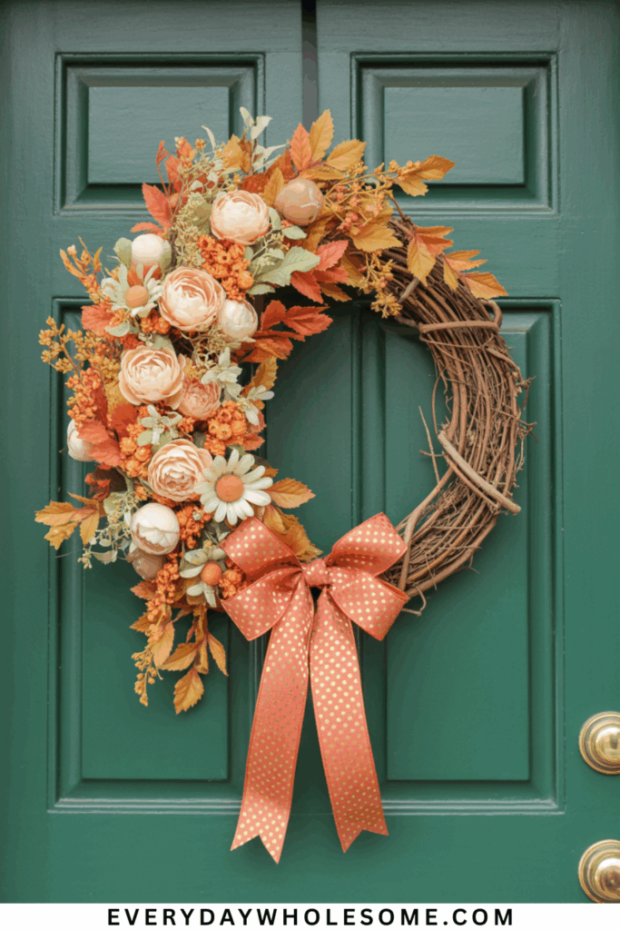 - Antique Rose and Copper Leaf Wreath – A romantic spin on traditional fall themes.