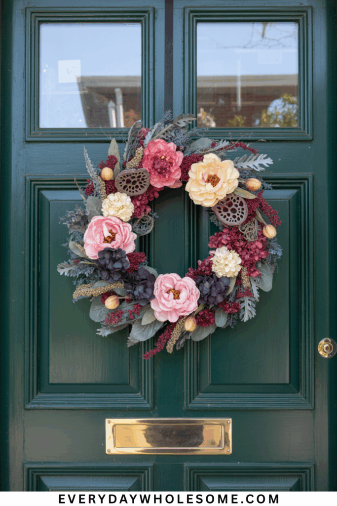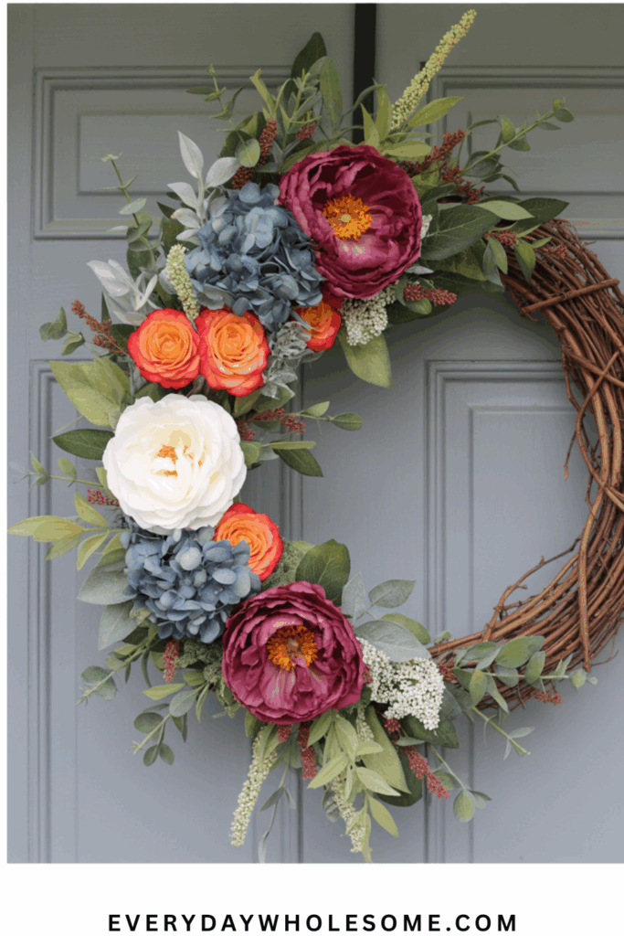 - Faux Magnolia and Burlap Ribbon Wreath – A Southern-inspired staple with timeless beauty.