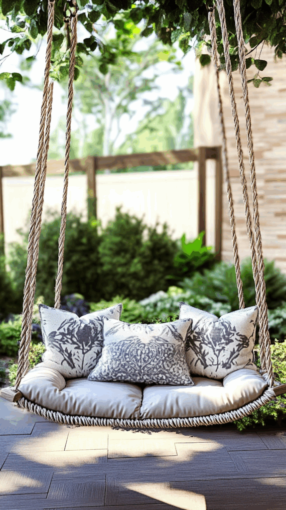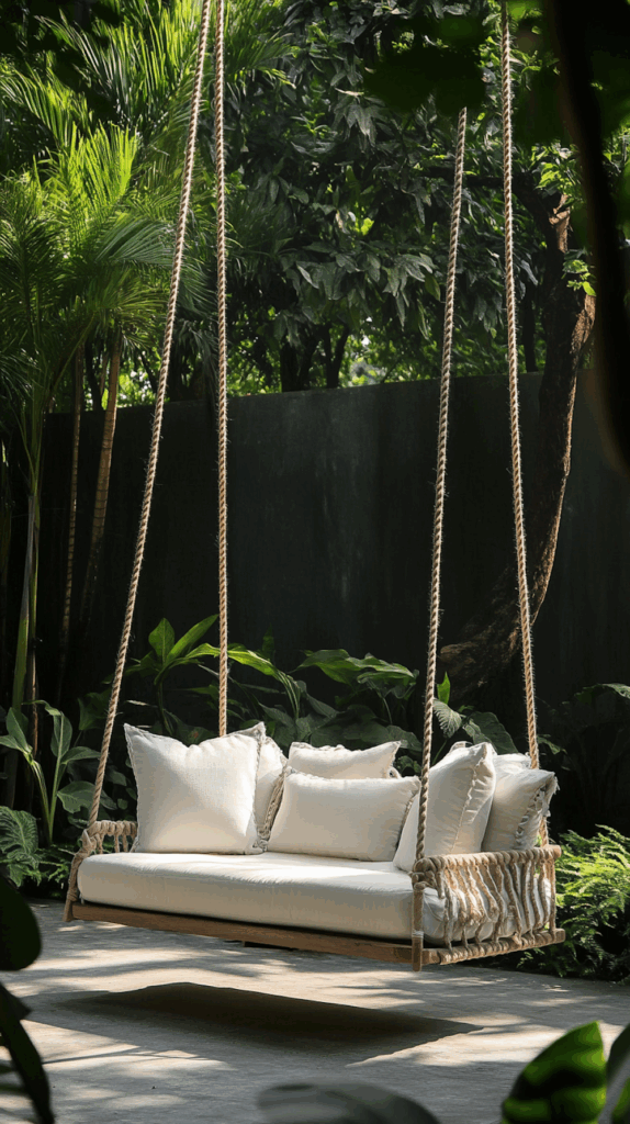 - Rope hammock swings – perfect for trees or pergolas