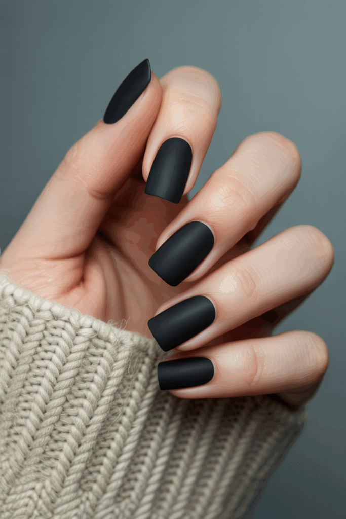 Minimalist matte black nails are easy to maintain and fit many occasions, making them a practical choice for everyday wear.
