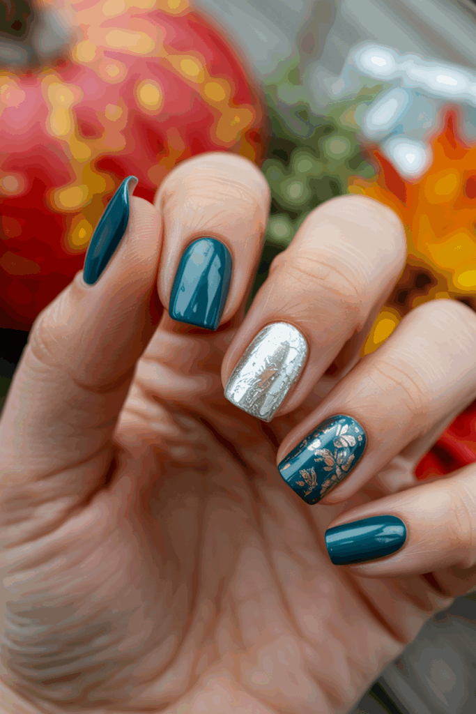 For those who love a bit of sparkle, this nail idea is a must-try. The shiny silver foil catches the light, making your nails stand out even more. Pair this look with simple jewelry to let your nails take center stage. Whether you’re heading to a party or just want to feel fabulous, teal and silver foil nails will definitely do the trick!