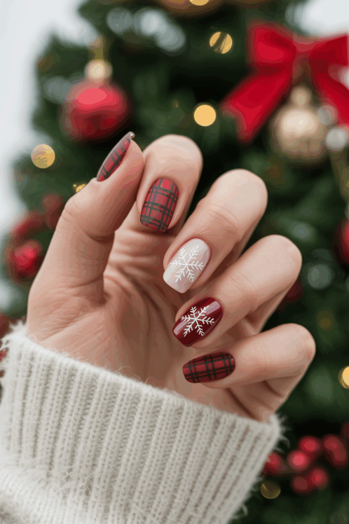 Plaid and snowflake designs combine classic holiday patterns with a winter touch. The plaid brings warmth, while snowflakes add a delicate, seasonal detail.
