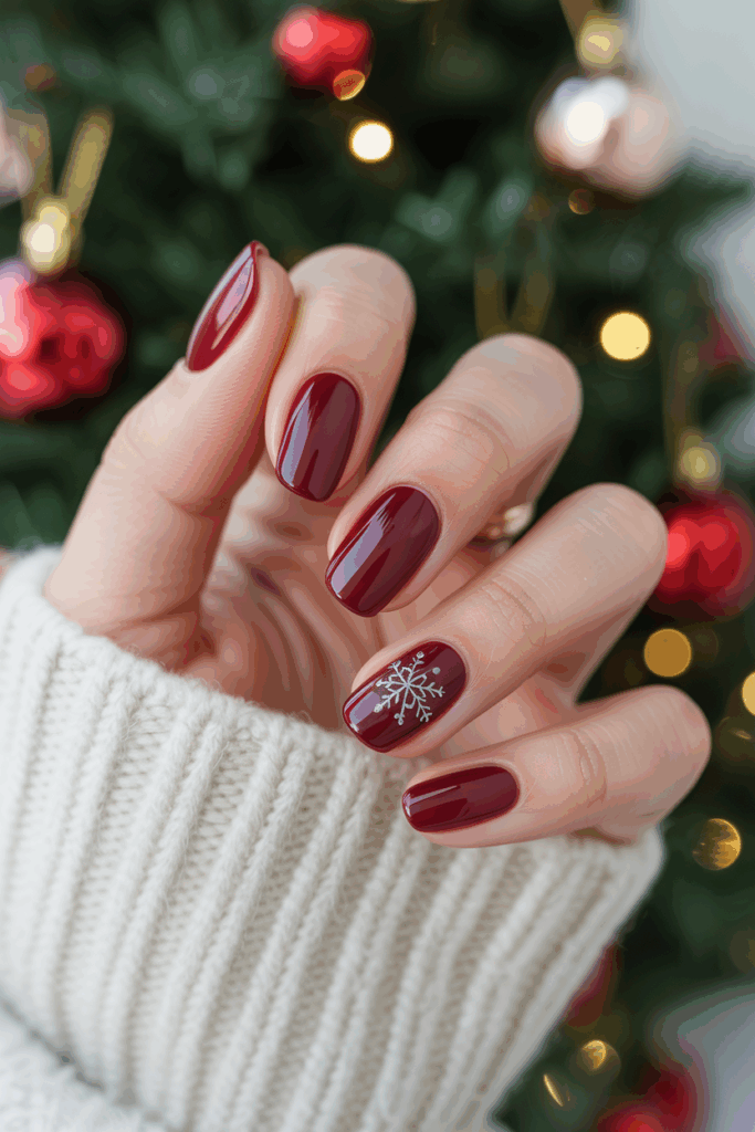 Burgundy nails offer a classic and rich look perfect for Christmas. A simple, matte finish adds a modern and elegant touch without being too flashy. This style works well for both short and long nails, making it versatile for any occasion during the holiday season.