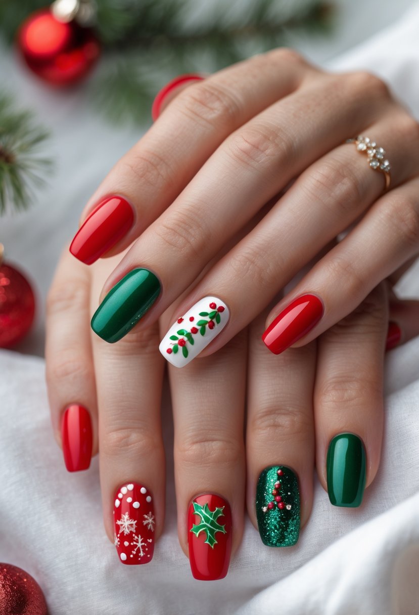 The classic red and green color combination is a popular choice for Christmas nails. It offers a simple yet festive look. Many people choose this pairing because it clearly represents the holiday spirit.