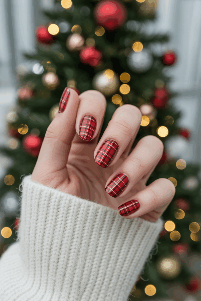 Plaid patterns bring cozy winter vibes to your manicure. Red and green plaid is the most traditional, but you can also try black and white or even gold-accented plaid for a chic twist. Plaid designs instantly make your nails stand out and match perfectly with holiday outfits.