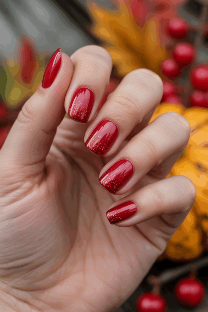16) Glossy Cherry Red with Glitter Gradient