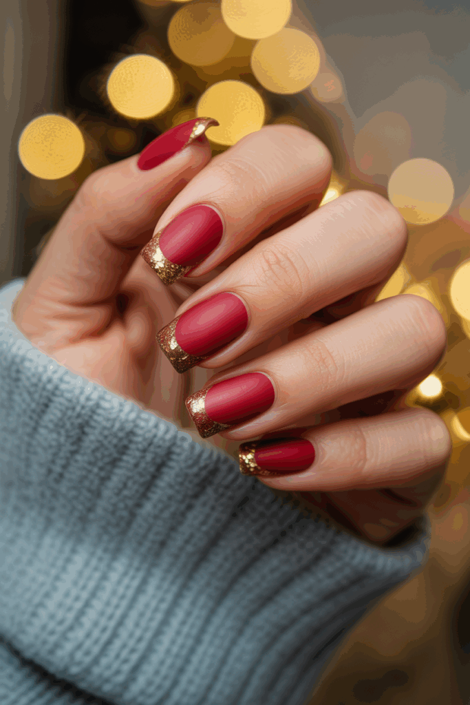This style works well for holiday parties and everyday wear in December. Glitter adds a touch of shine without being too bold. It suits many nail shapes and lengths.