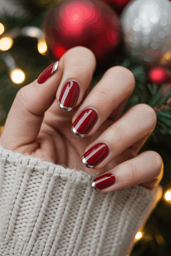 It is easy to create at home or request at a salon. The combination feels classic and fits many holiday outfits.