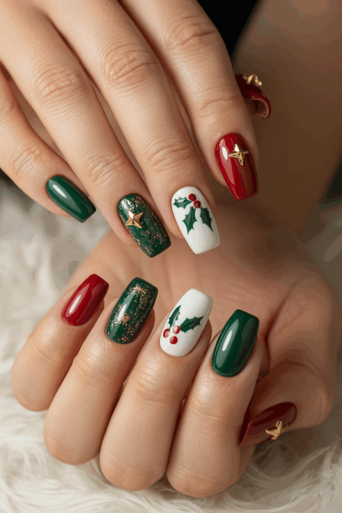 These nails often feature patterns like Christmas trees or subtle glitter. They are easy to wear and maintain during the busy season.