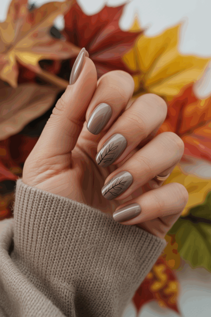 The combination of colors and textures makes these nails stand out. The rich taupe complements the vibrant autumn leaves, creating a harmonious blend. Whether you’re sipping pumpkin spice lattes or enjoying a stroll through the park, these nails will surely catch some attention.