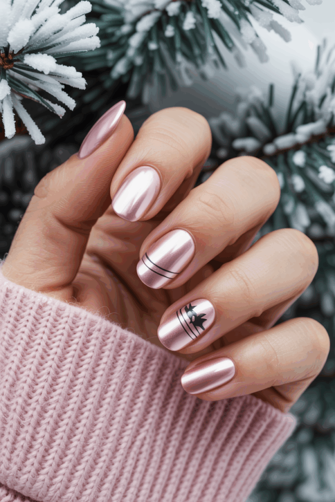 Rose gold chrome nails offer a warm, metallic shine that fits well with winter styles. Adding subtle glitter enhances this look without overpowering it.