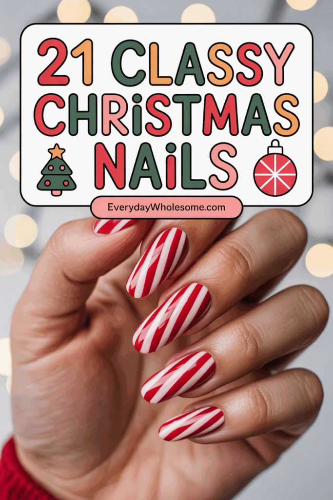The stripes can be thin or thick, straight or slightly curved, adding some variety. Some nails may include a touch of glitter to make the look more festive without being too flashy.