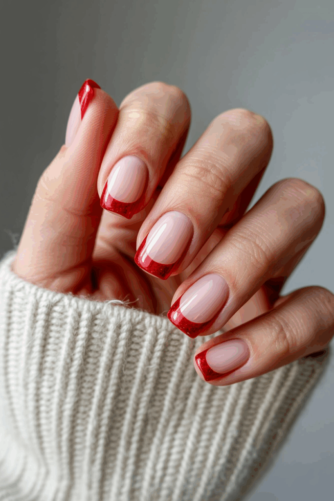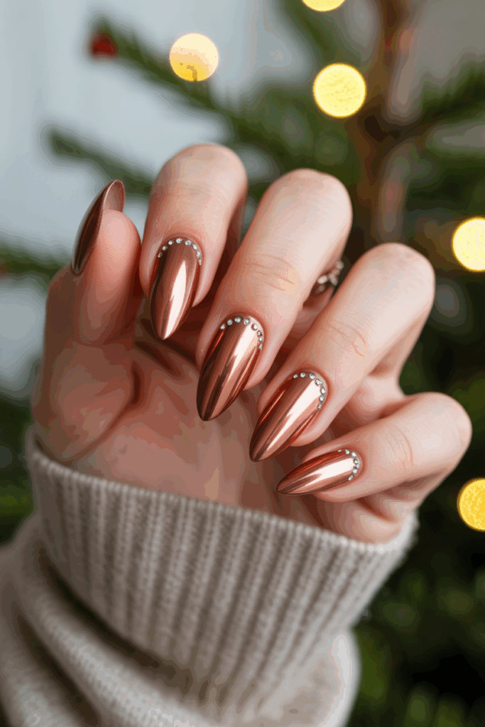 This style works well on both short and long nails. It brings a subtle holiday sparkle that fits many Christmas looks.