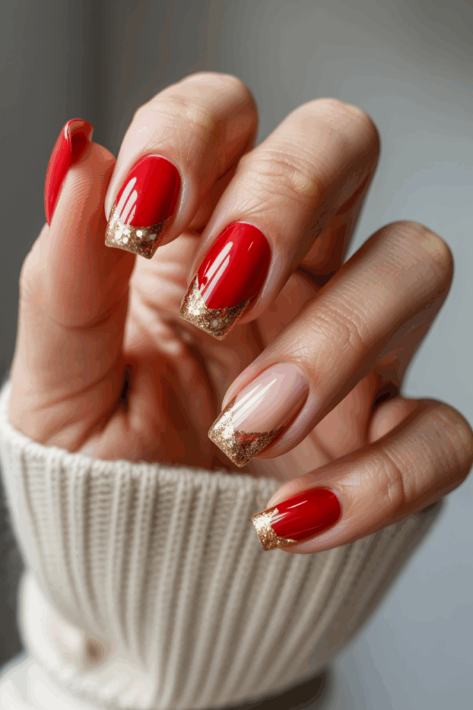 1) Classic Red with Gold Glitter Tips