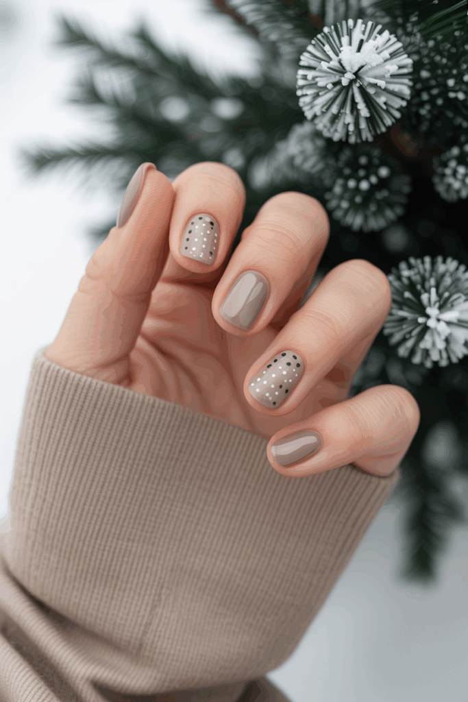 Minimalist dots in neutral shades add subtle detail without overpowering the look.
