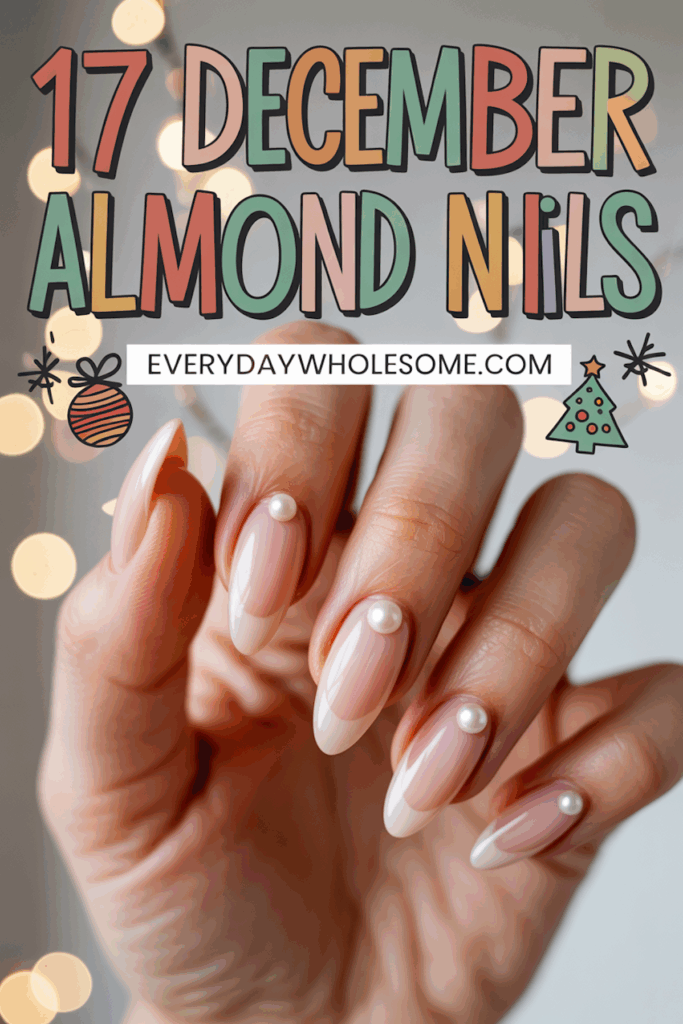 Almond nails with pearl accents offer a delicate and elegant look. The pearl details add a soft shine without being too flashy. This style works well for both short and long almond shapes. It suits winter and holiday seasons like December.