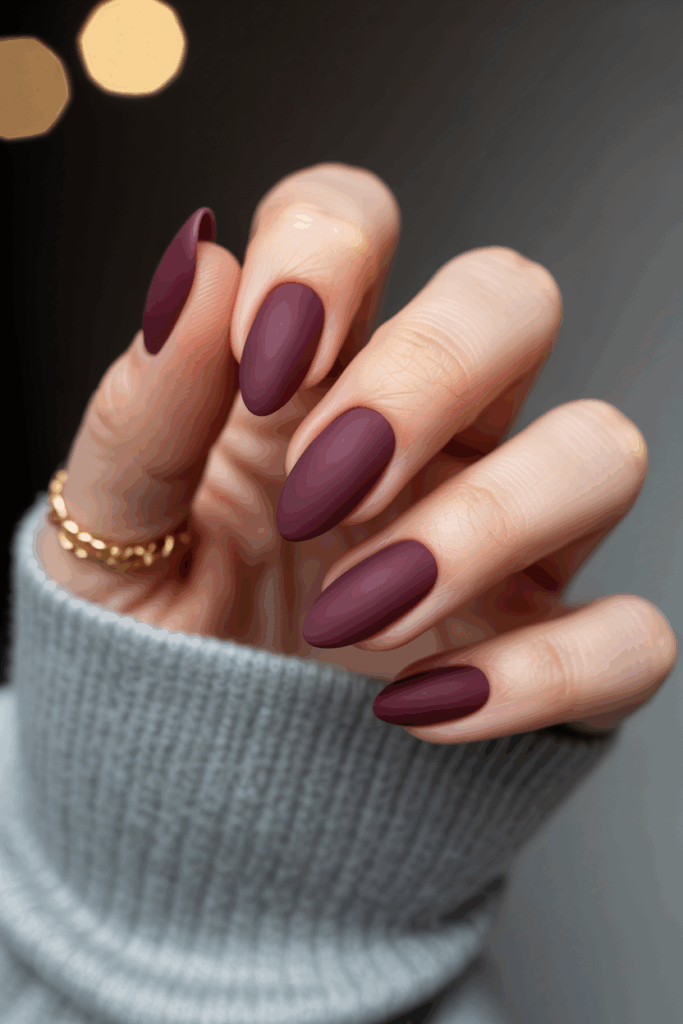 13) Dark plum almond nails with matte finish