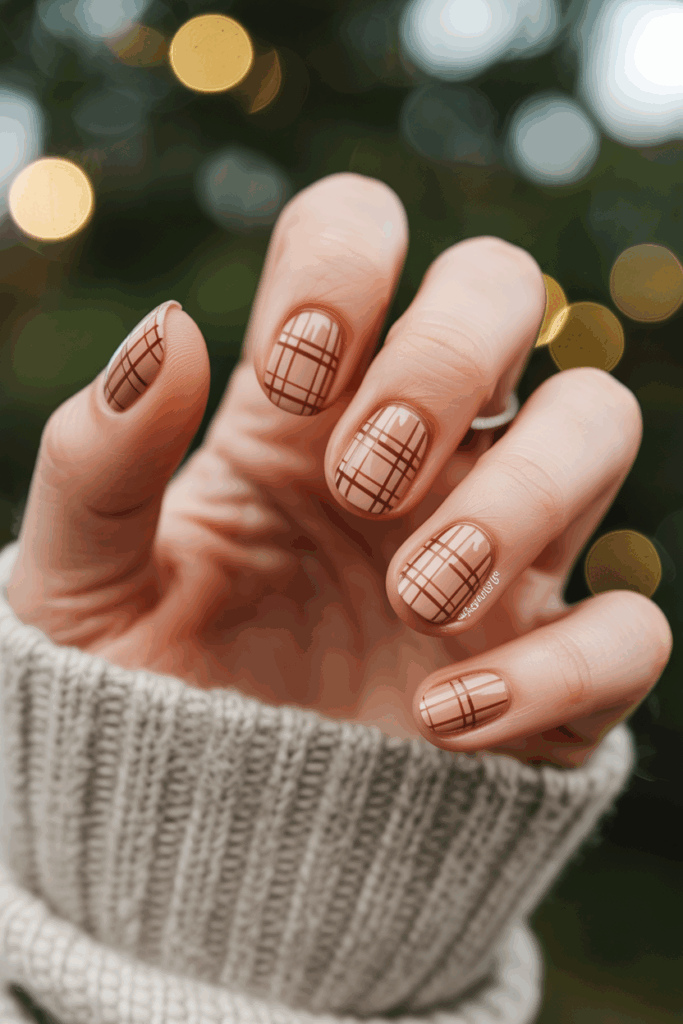 Plaid patterns in warm tones are a popular choice for December nails. Shades like burnt orange, caramel, and mustard create a cozy, seasonal feel. These colors work well with classic tartan designs and add a polished look to any style.