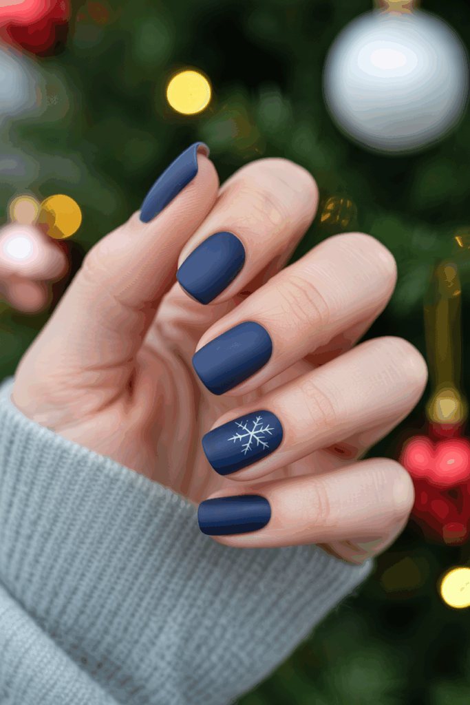 Navy blue with a matte finish offers a stylish and modern look for December nails. The deep color feels calm and elegant, fitting well with winter themes.