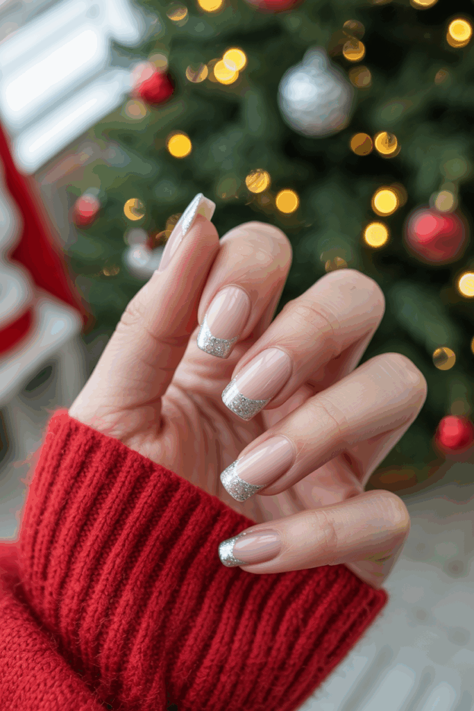 13) Sparkly French Tips with Silver Glitter