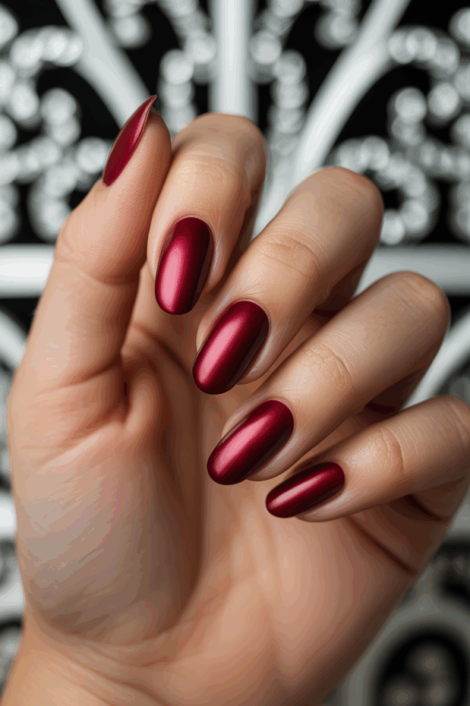 Deep red nails with a satin finish offer a smooth, muted shine. This style avoids high gloss but still looks polished and refined.