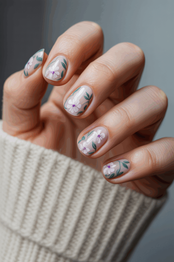 Delicate floral nail art features soft and subtle flower designs that add elegance to any manicure. The look often uses pastel colors and small floral patterns for a gentle style.