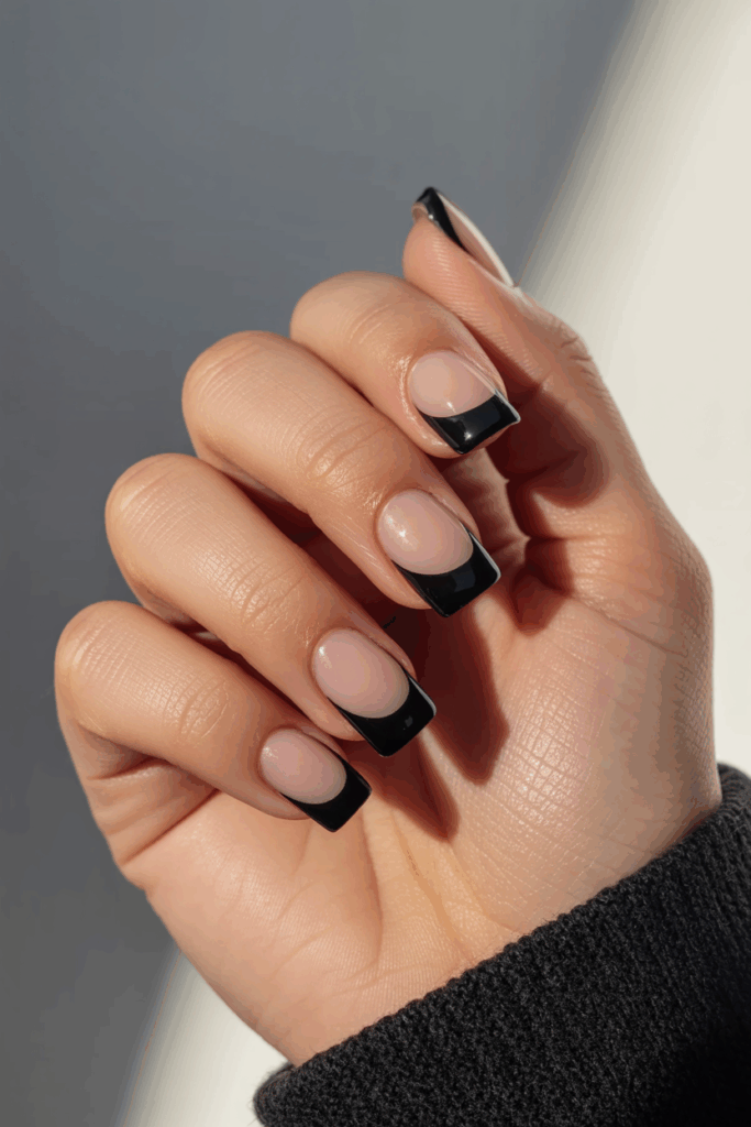 Glossy black tips offer a sleek and modern twist on classic nail styles. They create a sharp contrast against lighter nail bases, adding depth and sophistication.