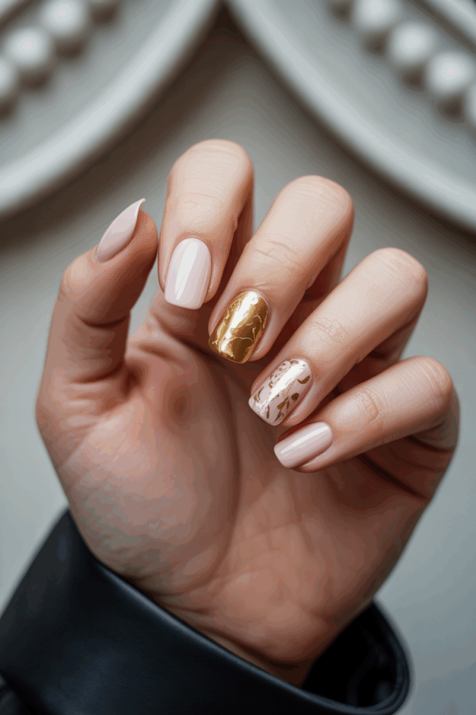 Gold foil accent nails add a subtle shine that suits both simple and bold styles. The foil is usually applied in small flakes or strips for a clean, elegant look.