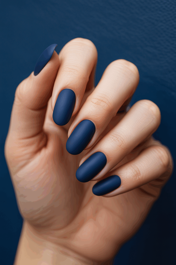 Navy blue matte nails offer a smooth, velvety look without shine. This finish gives a modern twist to a classic color.