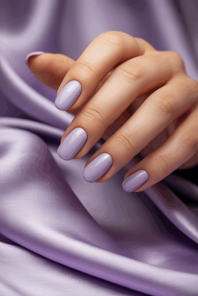 This nail idea uses a soft lavender shade with a shiny finish. The glossy surface adds a clean and polished look without being too bold.