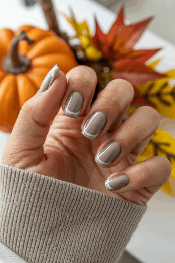This style works especially well if your wardrobe leans minimalist or cozy. Taupe blends beautifully with fall tones without competing with them. And because the matte finish mutes everything, the tips look extra smooth and clean.