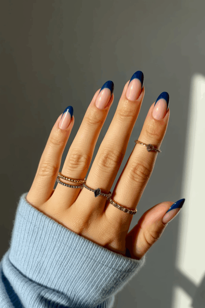Midnight blue tips feel a little mysterious and very autumn-night-sky. It’s a break from all the warm browns and oranges, but still feels seasonal in a cozy, moody way. If fall had a nighttime color, this would be it.
