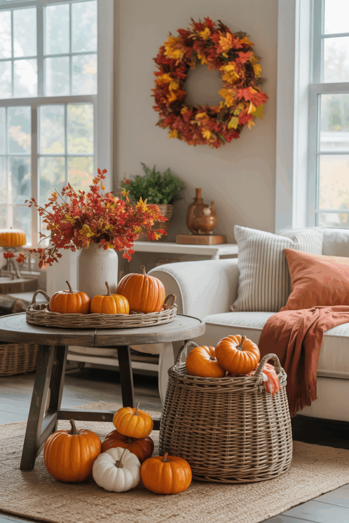 Wicker baskets are practical and stylish, adding rustic charm while providing storage. They can hold blankets, firewood, or even kids’ toys while blending seamlessly into fall décor.