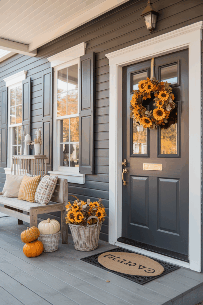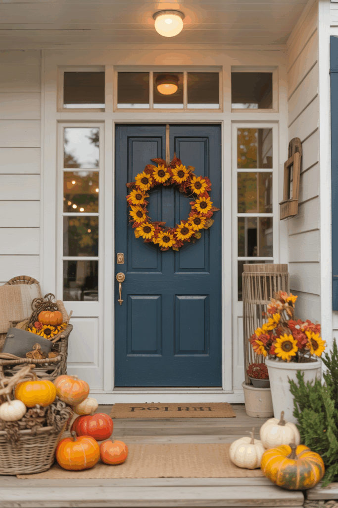 They can create a welcoming, natural look for fall. Dried sunflowers last longer than fresh flowers, making the wreath durable. This simple decoration adds warmth without needing much care.